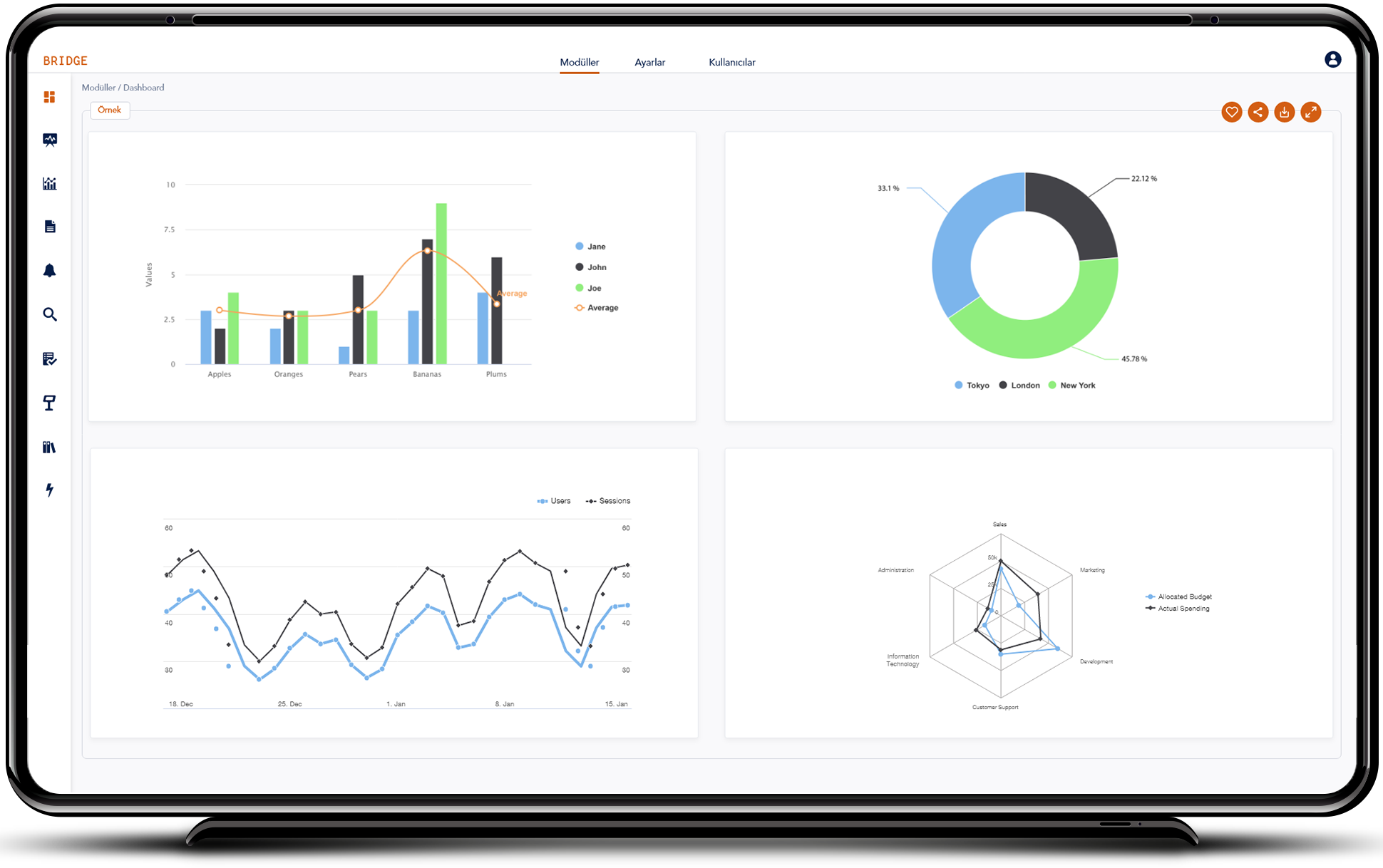 Customisable dashboards based on individual needs. Allows to watch and measure all operations by all internet of things.